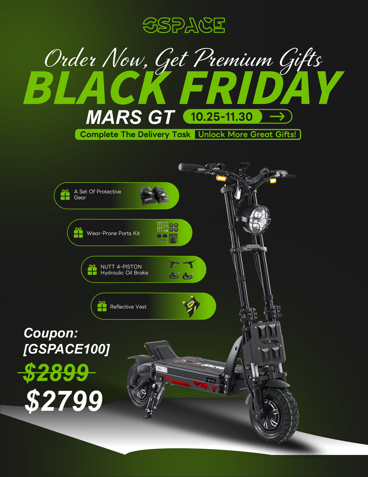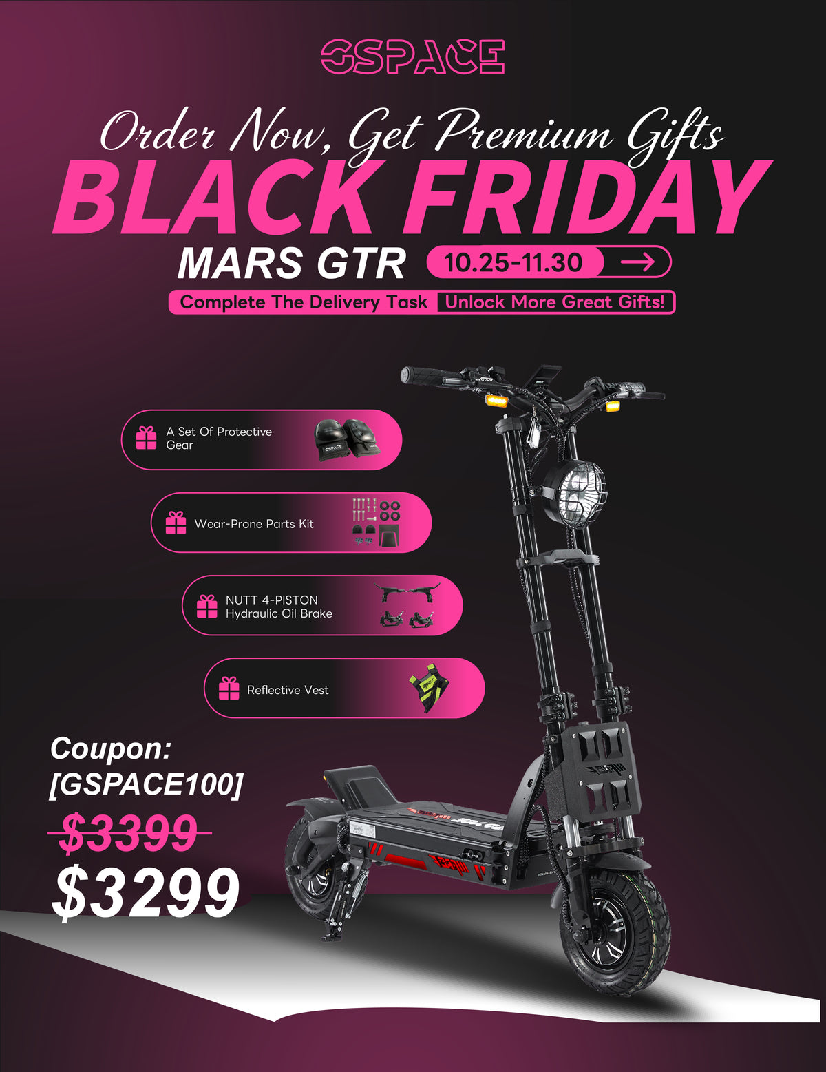 The Mars is GSPACE®'s high-end high-speed electric scooters series .The Mars series includes Mars Eco, Mars GT, Mars GTR and Mars GS, which are designed for professional riders. GSPACE® MARS features a technical core of A-A dual-arm front suspension and multi-link rear suspension, combined with a six-fold safety protection system, and has been rated as” The Best Electric Scooter” by ESG for 2024."